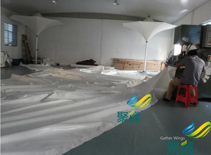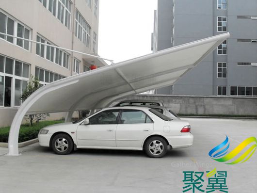 膜結構汽車車棚面料一般膜結構用料選用進口及國產PVC涂層及PVDF PTFE膜材 膜布每平方重:950g 1100g 1200g 其厚度在:0 8mm 0 9mm 1