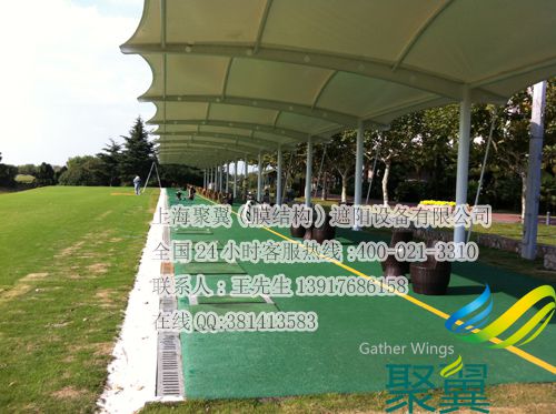 深圳高爾夫球臺膜篷采用進口的PVDF膜材,PVDF膜材料自潔性能超強,取代了國內使用的PVC膜材料,PVDF膜材料的上市立刻使膜結構業內關注并火爆