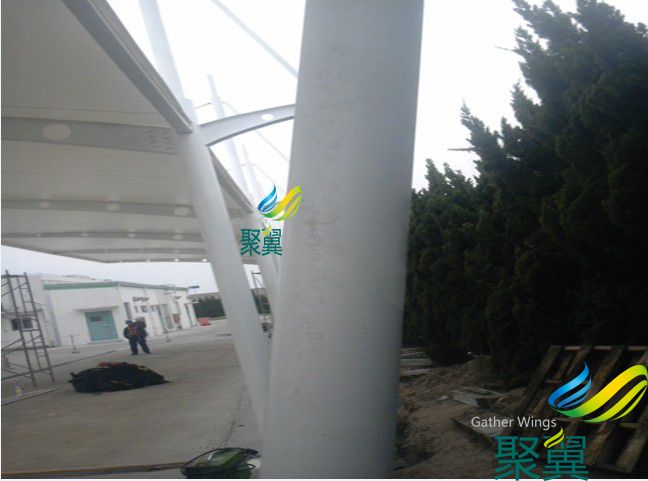 膜結構車棚特點:車棚材料選用了進口結構建筑材料。車棚骨架,表面處理采用進口船用底漆,炳烯酸聚氨酯面漆。 膜結構車棚可選材料:鋼材、