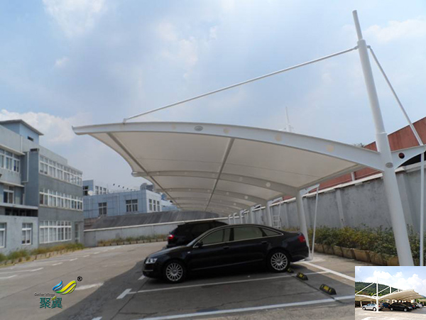 膜結構車棚可選材料:鋼材、鋼索、膜材料等。