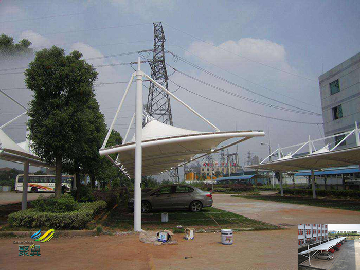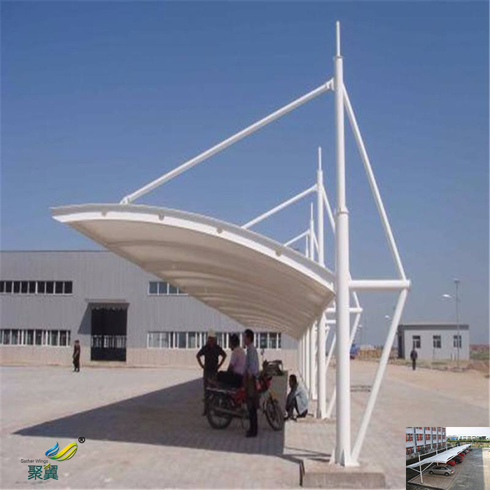 膜結構是一種新興的建筑形式,它以建筑膜材為基礎,跟支承結構以一定形式相結合,從而形成一種柔性的結構空間,它通常主要起到遮陽、避雨的功能用途廣泛,比如它可以用于建筑物頂棚、景觀遮陽、車棚、污水池封閉、充氣膜等領域,今天我們主要來談下景觀膜結構車棚的適用范圍及其常見造型。