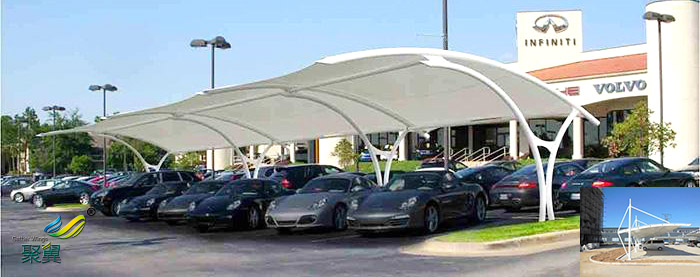 膜結(jié)構(gòu)車棚抗沖擊性:的沖擊強度是普通玻璃的250-300倍,是亞克力的板材的20-30倍,是鋼化玻璃的2倍,幾乎沒有斷裂的危險性,有“不破玻璃”和“響鋼”之美稱。