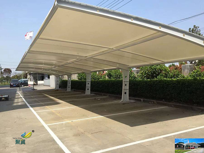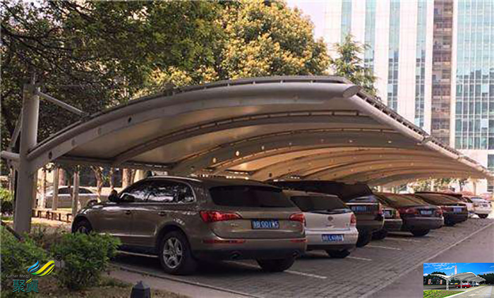 膜結構車棚,是以建筑織物,即膜材料為張拉主體,與支撐構件或拉索共同組成的結構體系,它以其新穎獨特的建筑造型,良好的受力特點——成為大跨度空間結構的主要形式之一。膜材料是指聚酯纖維基布或PVDF、PVF、PTFE等不同的表面涂層,配以優質的PVC組成的具有穩定的形態,并可承受一定載荷的建筑紡織品。它的壽命因不同的表面涂層而異,一般可達成10-20年。