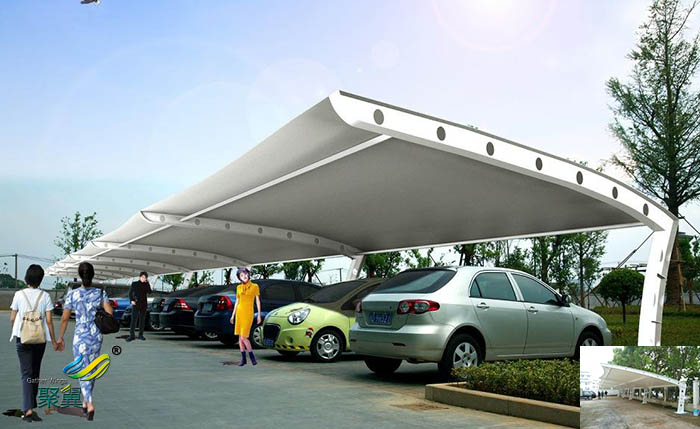 2、膜結構汽車停車棚而選用膜構造雨蓬更能真實呵護您的愛車,減緩您愛車的老化速度。