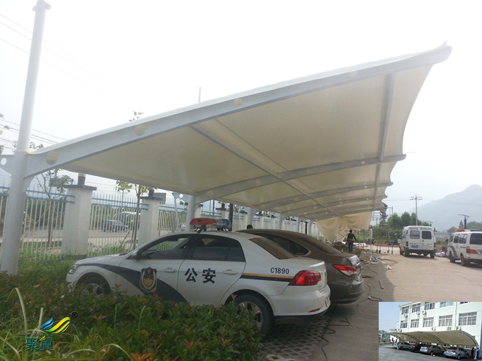 膜結構車棚,是以建筑織物,即膜材料為張拉主體,與支撐構件或拉索共同組成的結構體系,它以其新穎獨特的建筑造型,良好的受力特點—成為大跨度空間結構的主要形式之一。膜材料是指聚酯纖維基布或PVDF、PVF、PTFE等不同的表面涂層,配以優質的PVC組成的具有穩定的形態,并可承受一定載荷的建筑紡織品。它的壽命因不同的表面涂層而異,一般可達成10-20年。