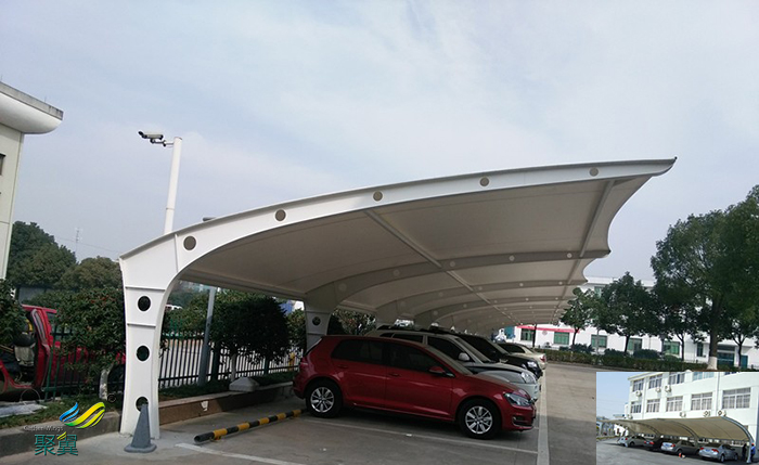 3、膜結(jié)構(gòu)車棚材料組成:鋼結(jié)構(gòu)+膜材料+附件等。