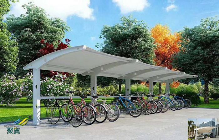 藝術性:除了一般雨蓬不可比擬的實用、耐用、遮風擋雨的功能外,膜結構雨蓬更是一座雕塑,一件藝術品,給人美的視覺享受。