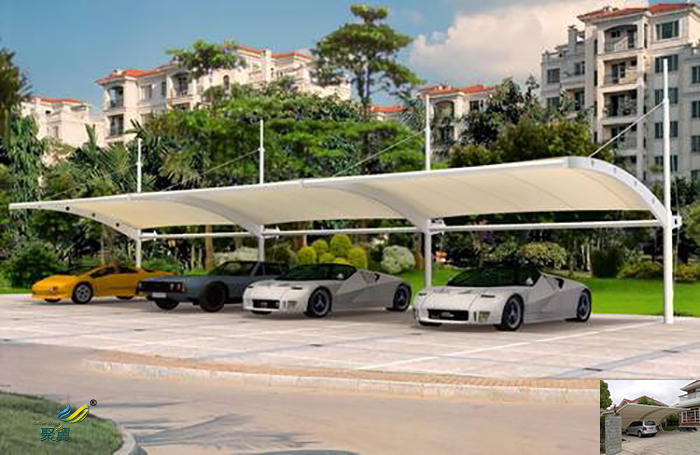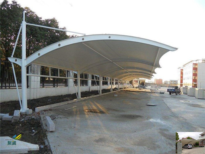 膜結構車棚膜材特性使用壽命參考如下:膜結構車棚使用壽命有多少年?
