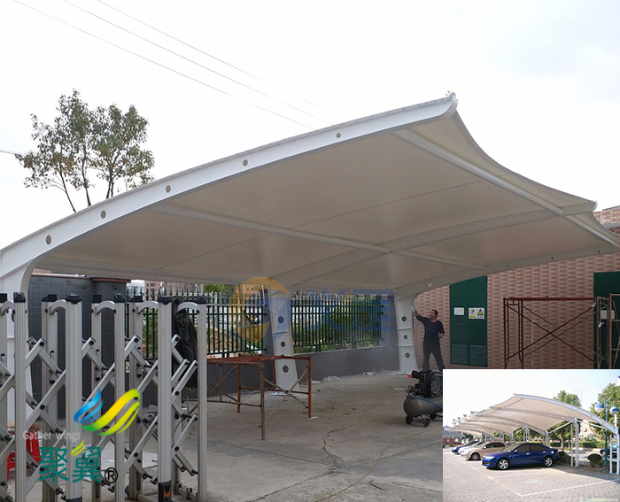 膜結構停車棚便于移動搬遷或更新改造。適用范圍:各類體育建筑、展覽建筑、娛樂演出建筑及設施、機場建筑及設施、濱海娛樂休閑建筑及設施、倉儲建筑或大型臨時設施、建筑小品、各類中庭透光屋面或天窗、其它各類輕型大跨度無柱空間或輕型屋蓋。在展現人的個性化、自娛性和多元性環境空間方面,膜結構建筑有著獨具魅力的建筑藝術特點,膜結構建筑作為一種現代化的工程結構,顯示了當今建筑與科學的發展水平。以上就是小編帶來的講解,希望對您有所幫助。