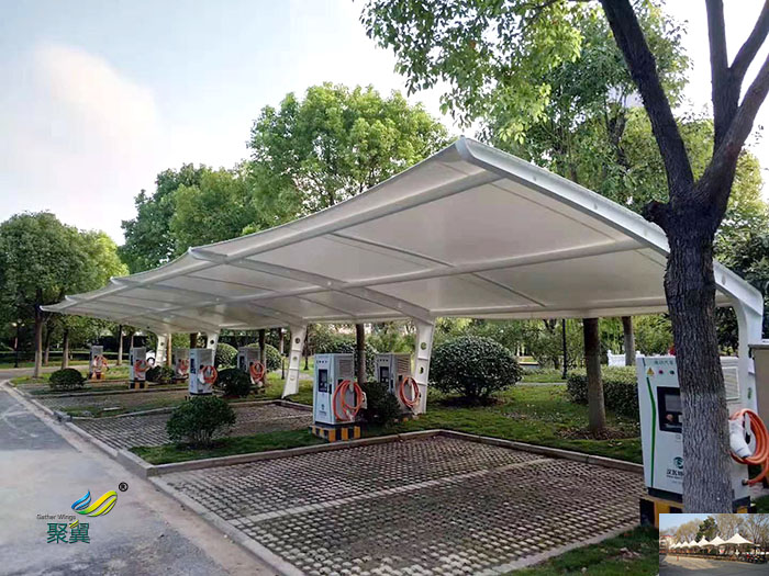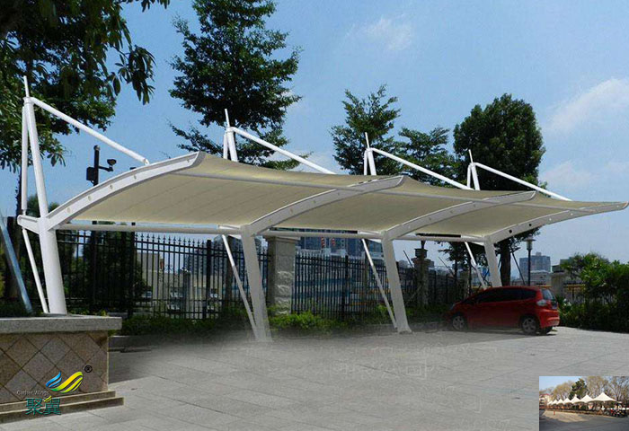 隨著現今社會的發展需要,我們可以看到城市里越來越多出現了一些膜結構車棚廠家所做的車棚,它可以在自然天氣災害的情況下讓你的愛車等物件免受其害,極大方便了人們的生活,下面小編為大家介紹一下膜結構車棚的特點及優勢。