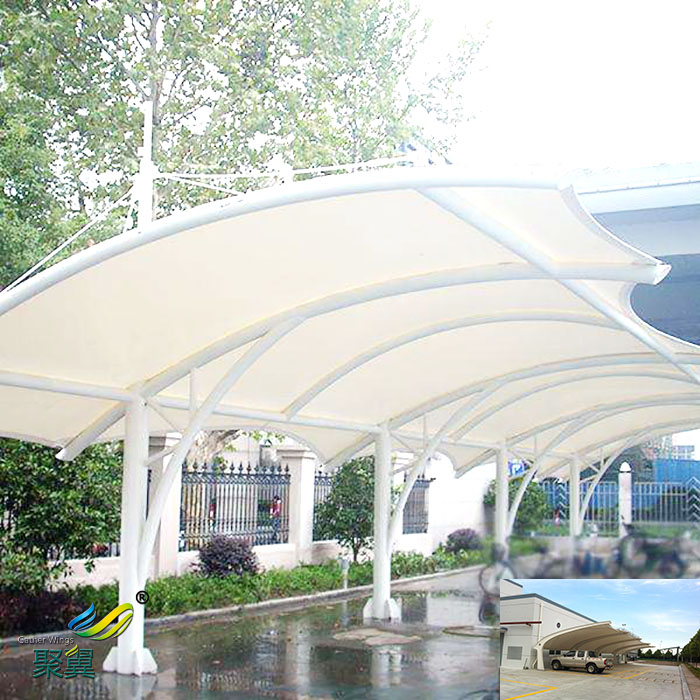 膜結(jié)構(gòu)汽車棚鉚接:開始使用鉚釘連接,鉚釘連接的塑性、韌性和整體性好,連接變形小,傳力靠,承受動(dòng)力荷載時(shí)的疲勞性能好,適用于重型和直接承受動(dòng)力荷載的結(jié)構(gòu)。但由于其構(gòu)造復(fù)雜,用鋼量大,施工麻煩,噪音大,目前已很少采用。膜結(jié)構(gòu)汽車棚鉚釘連接的受力性能、構(gòu)造要求及設(shè)計(jì)方法原則上與普通螺栓連接相同,不同的是設(shè)計(jì)參數(shù)及設(shè)計(jì)值取值不同。