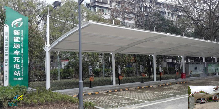 杭州鋼膜結構停汽自行充電樁車棚安裝廠家報價