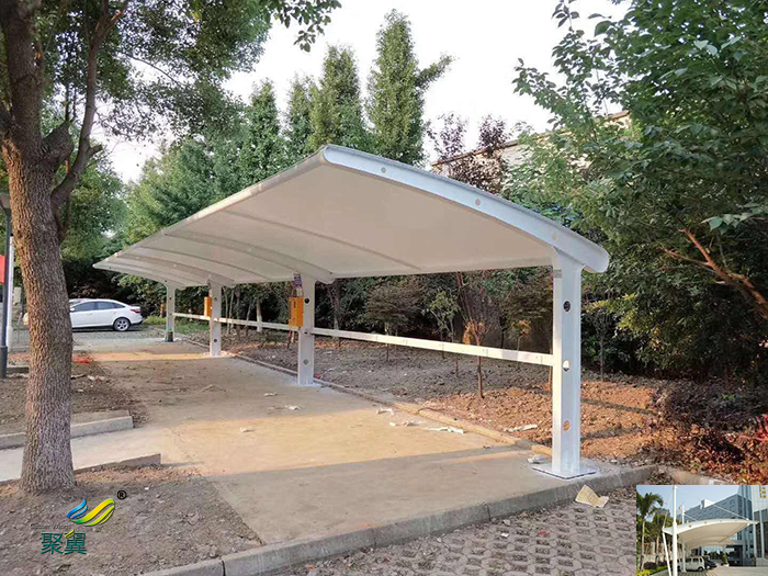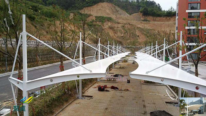 上海膜結構學校自行汽停車棚廠家安裝設計效果圖