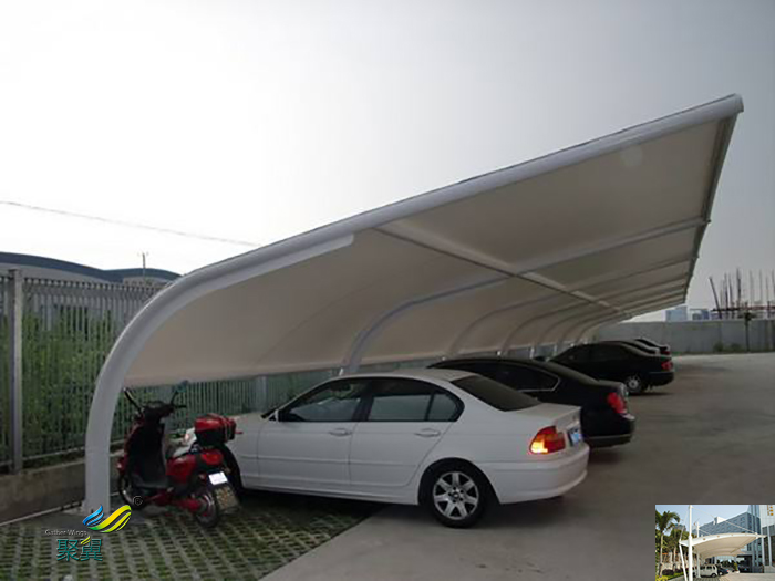 膜結構車棚從結構形式上大致可分為骨架式、張拉式、充氣式膜結構3種形式。