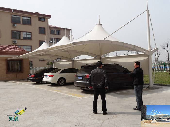 膜結(jié)構(gòu)停車(chē)棚表面上風(fēng)也是膜結(jié)構(gòu)景觀建筑受到青睞的緣故原由之一:目前膜結(jié)構(gòu)景觀建筑的最大跨度已超過(guò)200米,造型獨(dú)特, 新鮮美觀, 色彩雄厚, 別具一格,便于移動(dòng)搬遷或更新改造;膜材料外觀的自潔性高,外觀與太陽(yáng)天然光照越來(lái)越白,且清潔方便。