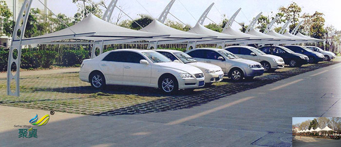 膜結構車棚是近幾年里使用的非常多的一種新型的建筑形式,膜結構在城市規劃中更是占據了非常重要的地位,膜結構停車棚所使用的膜材料具有非常好的防火性能。