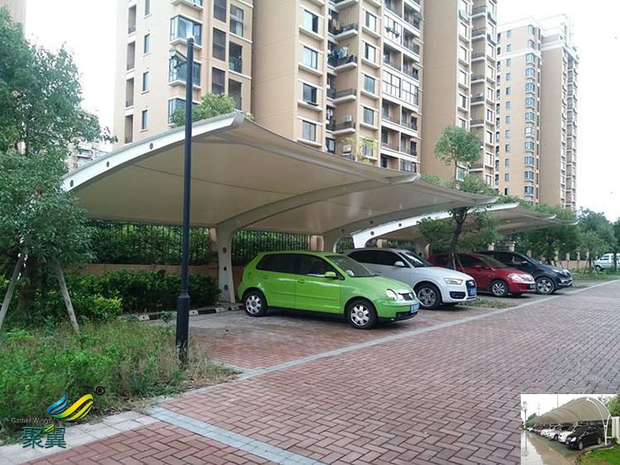 膜結構使用壽命及特點:膜結構車棚的篷布材質是膜材,而膜材的 特點是強度高、