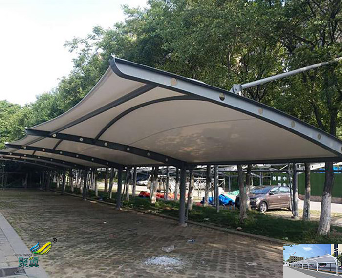 隨著經濟發展,人們生活水平大幅度提升,在交通方面,至少每家每戶都有車,相應配套的車棚設施,也隨處可見。今天,就來為大家介紹一下新型的車棚——膜結構車棚及其優勢。