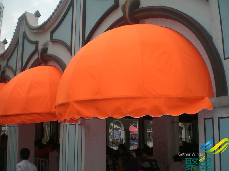 徐州歡樂谷固定遮陽雨棚圖1(見下圖):固定遮陽雨棚外觀照片,遮陽面料選用橙色280g亞克力專用色織遮陽面料,質保5年不易退色。亮麗醒目,室內為歡樂谷碰碰車游戲場,多門設計讓游戲一目了然引游客深入體驗游戲當中!門頭上的固定遮陽雨棚起到防曬、防雨雪及裝飾作用!徐州歡樂谷固定遮陽雨棚尺寸測量、面料及顏色選擇、造型設計聯系聚翼業務部門:400-021-3310聚翼遮陽歡迎您的垂詢!