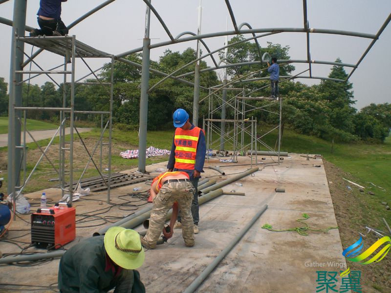 詳細(xì)>>高爾夫看球臺膜結(jié)構(gòu)遮陽棚制作現(xiàn)場: