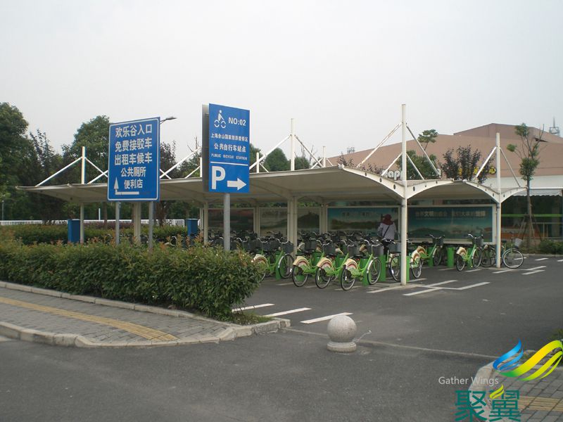 詳細>>徐州歡樂谷膜結構自行車停車棚,雙挑梁設計更大停放空間。膜...