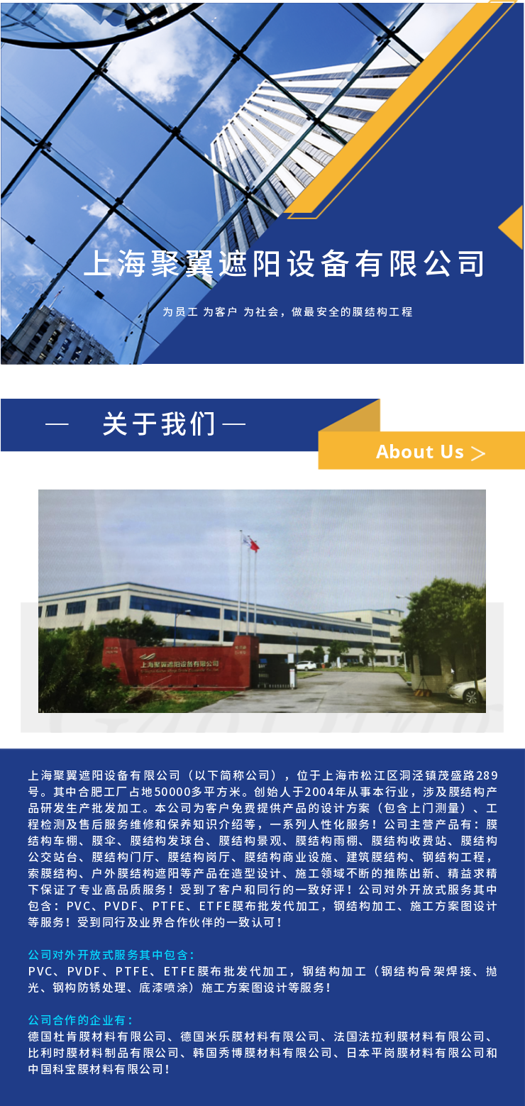 聚翼公司設計團隊目前已擁有12名資深專業設計師,公司還聘請了來自德國的David和澳大利亞的Komay Lucy兩名資深設計顧問,對膜結構的設計研發及膜產品項目的風格鑒定領域都有著豐富的經驗。公司設計團隊還一直致力于鉆研膜結構材質設計,突破傳統技術,提高了膜結構產品的抗壓性能,在結構工程領域摘得多項獎項證書。 |