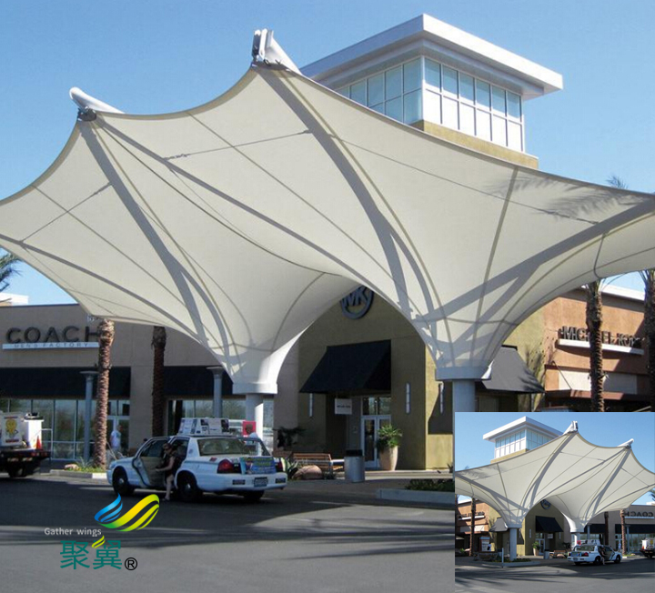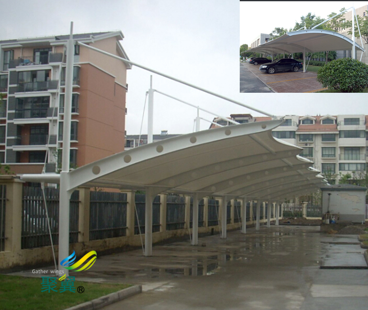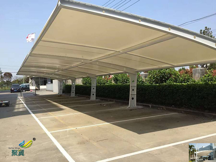 1 膜結構車棚具有強度高,耐久性好,防火...
