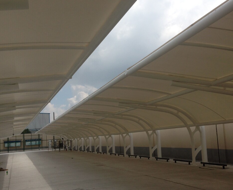 詳細(xì)>>廠區(qū)膜結(jié)構(gòu)車棚JY20抗風(fēng)力好,耐久性強(qiáng),對(duì)熱能反射率73%壽命長(zhǎng)。
