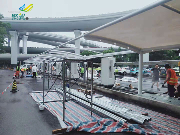 詳細(xì)>>發(fā)材料技術(shù)指導(dǎo)安裝膜結(jié)構(gòu)非機(jī)動(dòng)車充電樁車棚