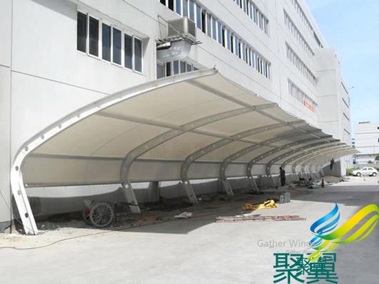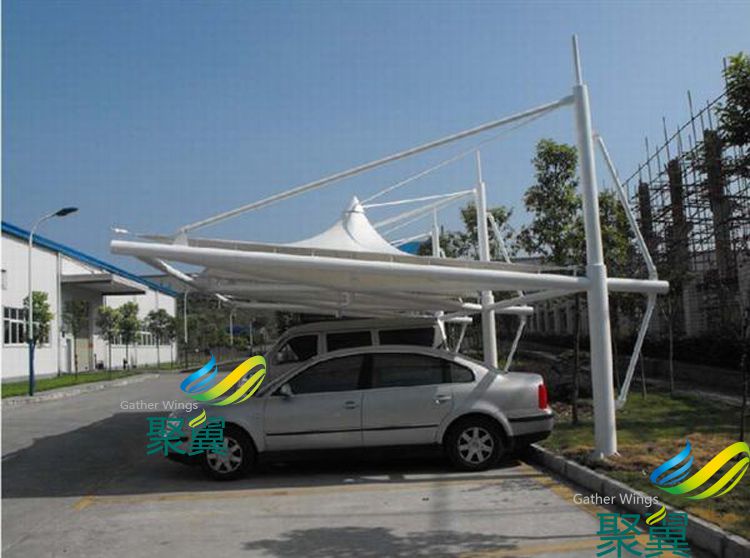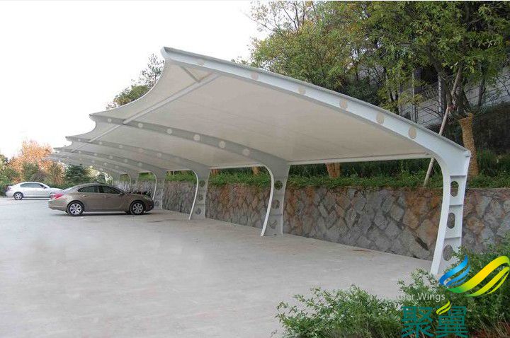詳細>>膜結構停車蓬良好的自潔效果在雨水的沖洗下還原如新。膜結構自重輕,結構簡單可靠,鋼架30年不變...