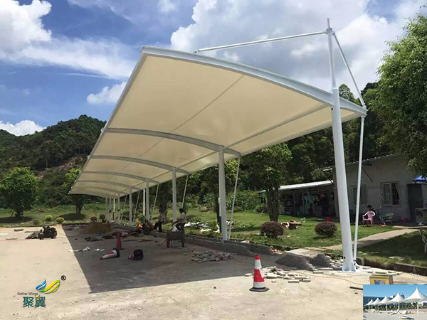 詳細>>寧波張拉景觀膜結構停車棚景觀棚設施設計廠家