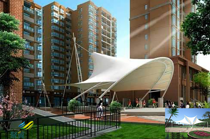 詳細>>安徽室內(nèi)張拉膜雨棚停車棚傘、景觀小品設計圖片施工安裝效果圖