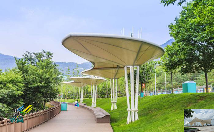 詳細>>深圳膜結(jié)構(gòu)車棚張拉雨景觀棚膜傘、景觀小品圖片設計材料公司