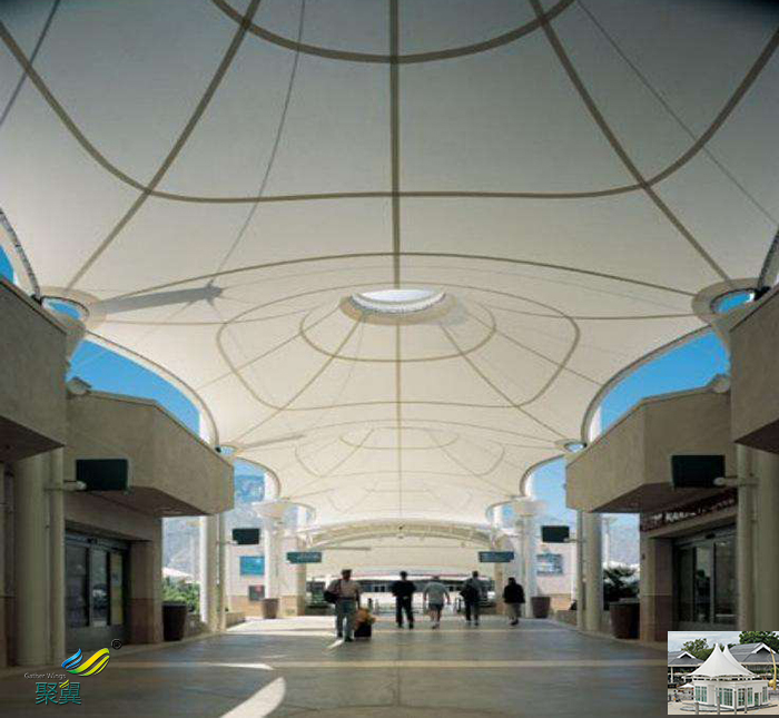 詳細>>湖南屋頂遮陽防雨舞臺膜結構搭建施工安裝生產