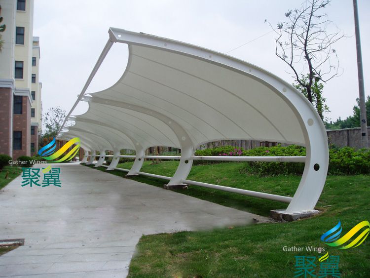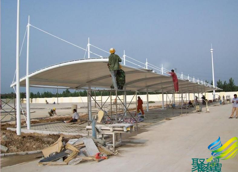 膜結(jié)構(gòu)車棚使用壽命長久耐用(可采用永久性建筑張拉膜)鋼結(jié)構(gòu)骨架可根據(jù)設(shè)計(jì)與環(huán)境的因素達(dá)到最佳方案,是一般的汽車車棚無法實(shí)現(xiàn)的。車棚膜布顏色有多種,停車篷的膜面料壽命在8年-25年不等。鋼材選用Q235,拋光防銹處理,表面噴漆:鍍鋅鋼索外包白色PE。壓制瞄具:鍍鋅螺栓,膜布采用歐洲進(jìn)口白色PVDF 詳細(xì)咨詢我司:400-021-3310(24小時全國免費(fèi)熱線),電話:021-61726028/60489599/60485955 傳真:021-37695806