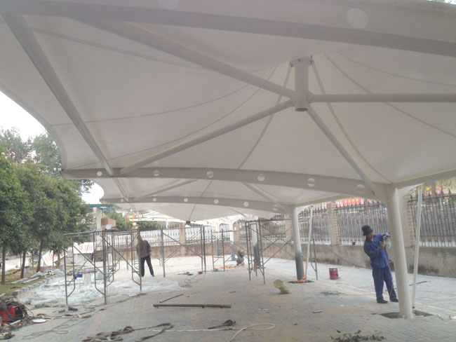 安裝細節:主體為鋼構焊接,采用主框架與部分結構同步安裝施工,油漆現場作業完成。膜布廠內加工成品現場安裝細節處理。需膜結構車棚可以咨詢我司,詳情電話:4008-613-119(客服熱線)