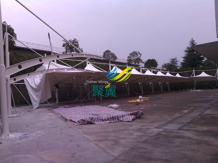 安裝細節:主體為鋼構焊接,采用主框架與部分結構同步安裝施工,油漆現場作業完成。膜布廠內加工成品現場安裝細節處理。需膜結構車棚可以咨詢我司,詳情電話:400-021-3310.