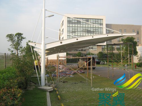 膜結構使用壽命及特點:膜結構車棚的篷布材質是膜材,而膜材的最大特點是強度高、耐久性好、防火難燃、自潔性好,不受紫外線影響,使用壽命長,一般15-30年。具有高透光率,透光率為13%,對熱能反射率73%,熱吸收量很少。正是因為這種劃時代的膜材料的發明,使膜結構車棚成為現代化的永久建筑。膜結構停車棚的市場前景:隨著都市現代化步伐的加快,汽車成為任何一個都市不可缺少的交通工具。我國由于汽車工業高速發展,城市的汽車擁有量成倍上升,但城市建設規劃沒能盡快適應這一發展的要求,常常是車無停放之地。所以在建設群規劃時就應充分考慮停車場的問題,把停車場的建設和規劃當成現代城市建設規劃的重要組成部分,變得越來越重要。同樣,膜結構在停車場建設中也擔當重要角色 聚翼為您介紹一下膜結構的保養及維修: