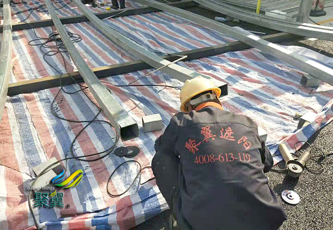 聚翼所有安裝人員經(jīng)過專業(yè)技能培訓(xùn)才能上崗工作,現(xiàn)場做好膜結(jié)構(gòu)車棚安全措施,戴好安全帽,工作服整齊,在施工現(xiàn)場周圍放置安全線,不是施工人員未經(jīng)允許不得私自入內(nèi)。