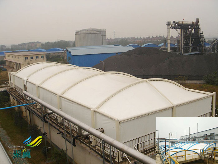 所有行業中污水池都有著令人頭痛的問題,那就是所散發出的惡臭氣體污染,在以前小型的池體還可以利用玻璃鋼來進行密封,可是對于大型池體(污泥氧化溝、濃縮池、消化池)的氣體收集就犯難了,大跨度、腐蝕,壽命、耐久度都是令人頭痛的事情,而污水池膜結構加蓋可以一次解決所有問題。