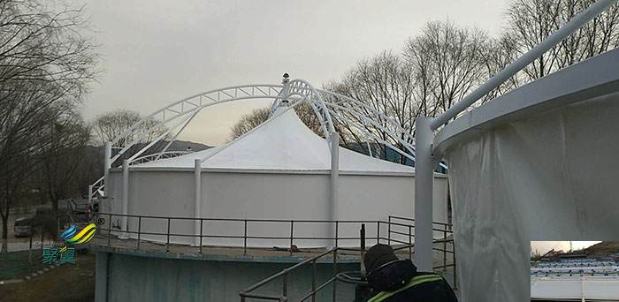 2.污水池加蓋優質的PVC涂層;改變了傳統涂層材料的表面特性,具有優良的抗污染能力,能長久保持清潔干凈,這樣,不僅增強了膜材的抗氧化性,而且延長了膜材的使用壽命。