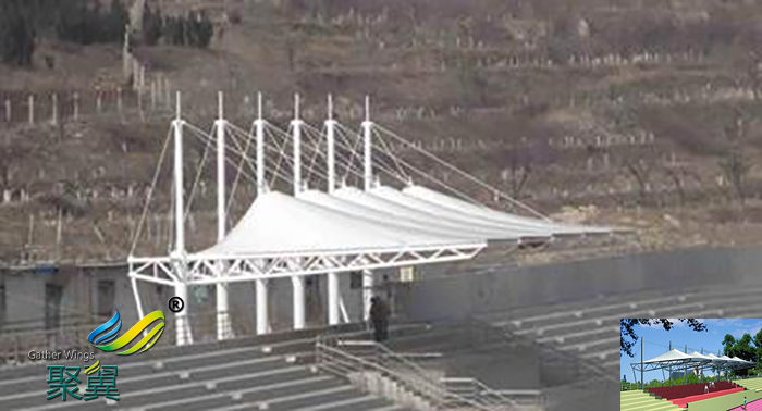 膜結構看臺新型且新穎的結構形式,由于其造型飄逸優美、材質輕便易于拆裝、有高度的自潔性能和抗老化能力,越來越多的新校區建設都開始采用這種獨特時尚的結構形式;