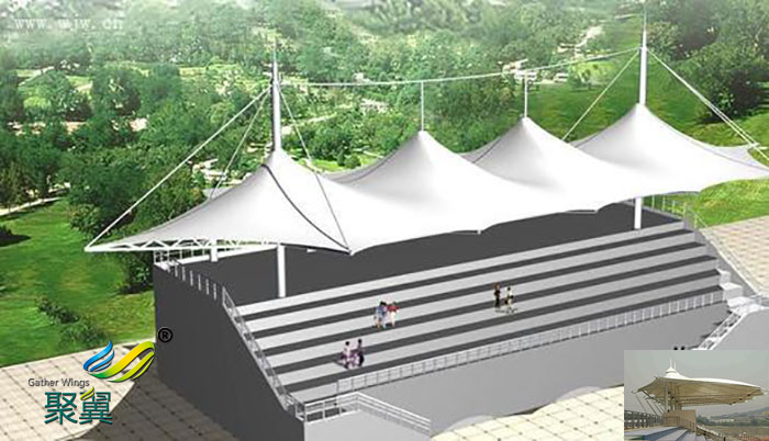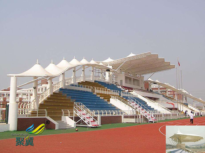 2.膜結構體育看臺建造施工工期短,膜結構加工制造都是在工廠內完成的,縮短了施工時間,從而也為企業節省了施工成本。