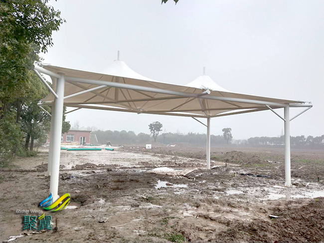詳細>>金山田園山莊景觀膜結構工程|帽頂棚膜結構