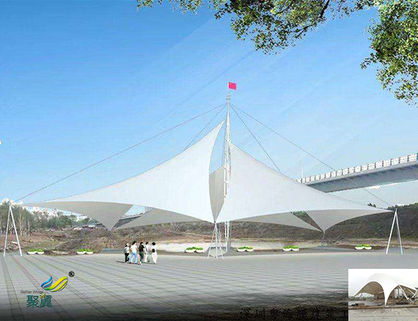 張拉景觀膜結構經濟性,對于同等大小的建筑,如果采用膜結構,其成本只相當于傳統建筑的二分之一或更少,特別是建筑短期應用的大跨度建筑時,就更為經濟。