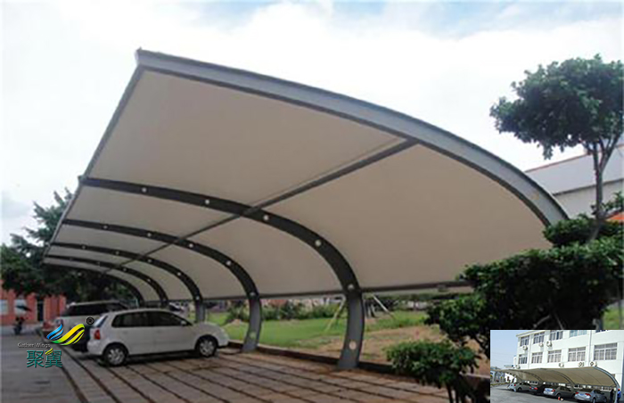 膜結構車棚具有良好的受力特點—成為大跨度空間結構的主要形式之一。膜結構輕巧、別致的造型在停車場及候車廳的建設中擔當了重要角色,除了滿足防風雨、防日曬等基本功能外,并有較好的標識招攬效果,展現了人們個性化的一面。