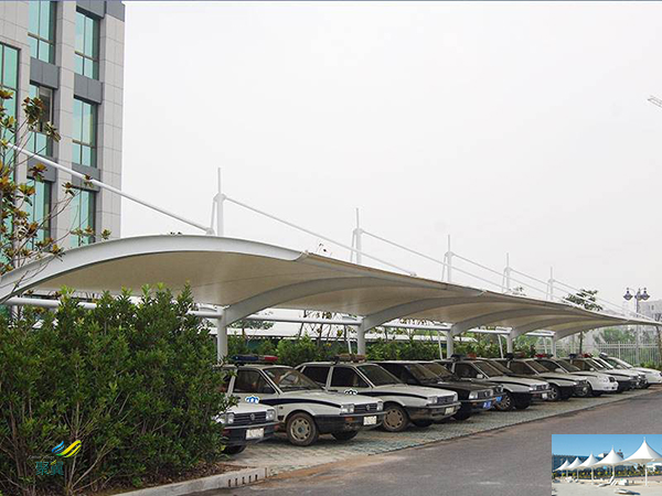 2、膜結構停車棚膜布特性:就算同原料的 膜結構由于化學成分的不認同,厚度,可清洗性,伸展性各有不同,假如經濟答應可以一味求高,但一般情況下依據自己實踐需求挑選。