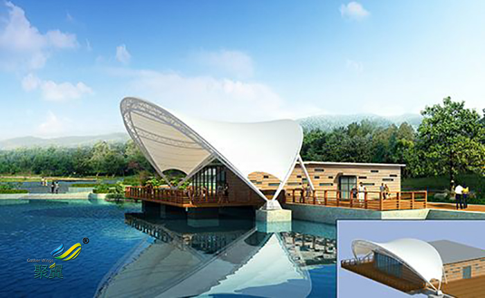 2、張拉舞臺膜結(jié)構(gòu)挑選膜面的形狀和材料時要考慮到一切可能的氣候狀況,并盡可能使用建筑自身特性等方法來削減能量的損耗。
