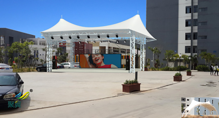 屋頂舞臺膜結構是集結構美、造型美、藝術美是為一的有機交融體,舞臺的展示效果是出類拔萃的,更是能與自然環境、城市文化景觀的有機結合,是演唱會、大型歌舞活動晚會及室外活動區域的好的舞臺選擇,那么有什么優勢呢?