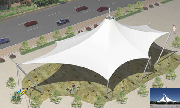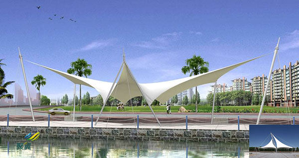 • 山東膜結構張拉膜傘停車棚看臺、景觀小品圖片材料報價效